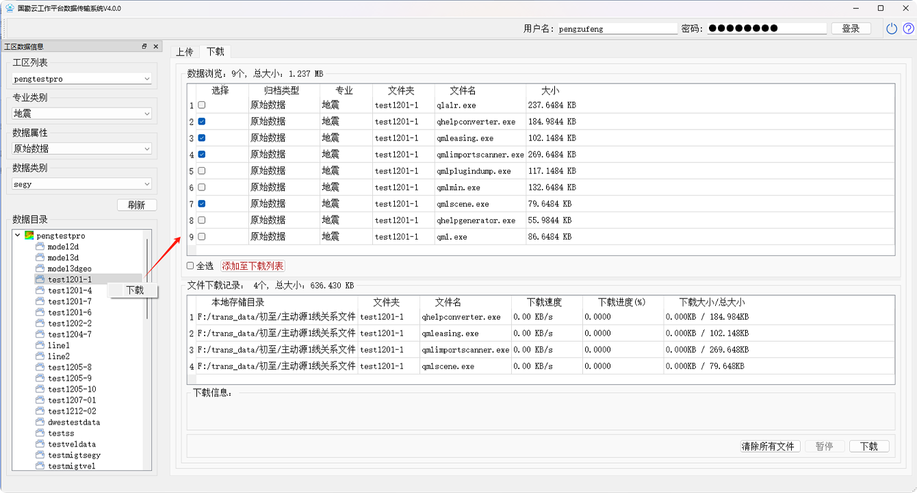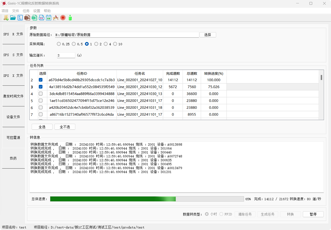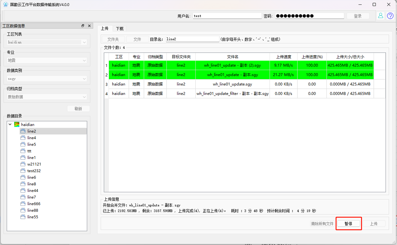 客户端工作平台以一体化集成架构承载勘探外业数据全流程处理能力,实现外业施工终端多源采集数据的智能转换,支持多种数据格式向国勘云的极速传输,构建起高效的数据流转通道。平台深度整合 SEGY